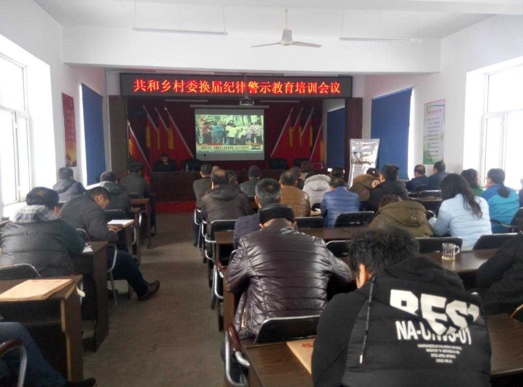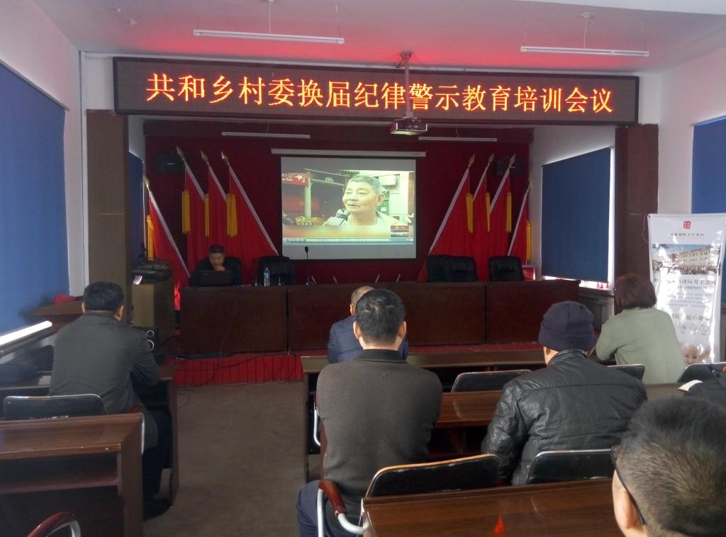 为进一步严肃村两委换届纪律,1月17日,共和乡召开村两委换届纪律警示教育培训会,共和乡党政领导班子、机关干部、村选举委员会主任,观看了警示教育片《警戒》。