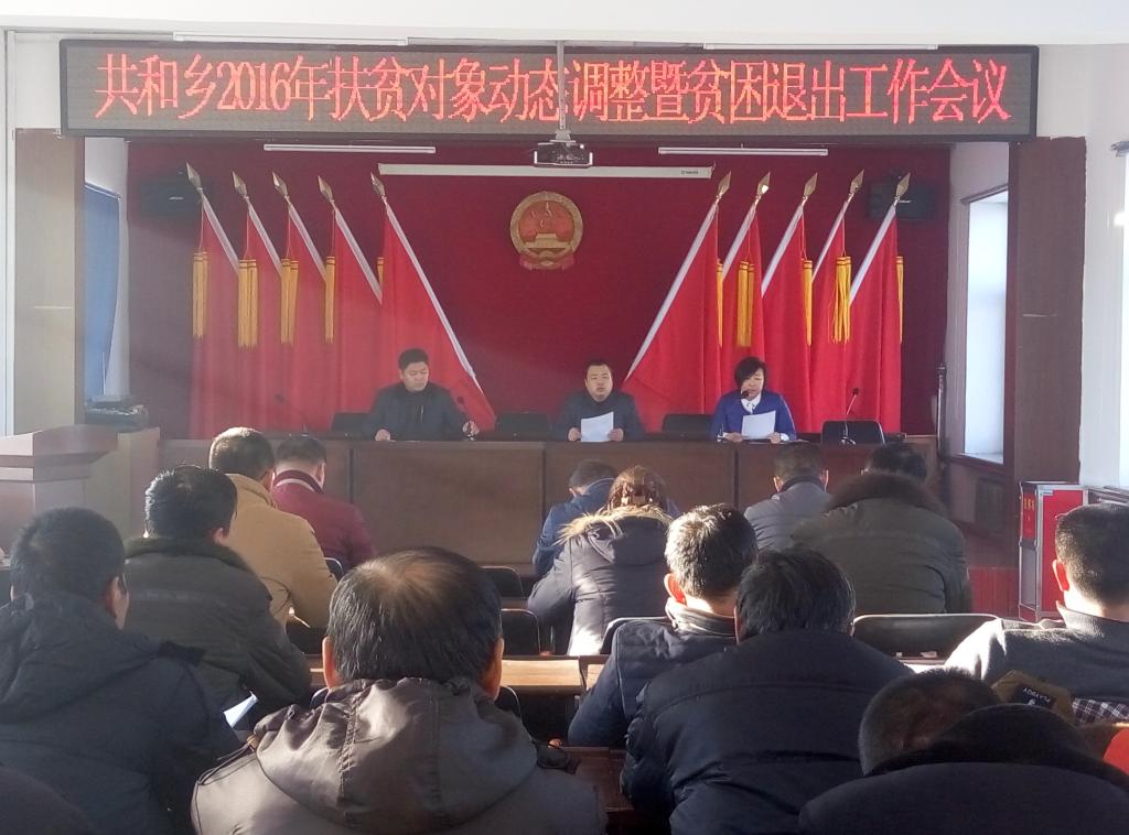 此次会议的召开明确了共和乡2016年扶贫对象动态调整暨贫困退出工作的具体任务,为共和乡打赢脱贫攻坚战打下良好基础。