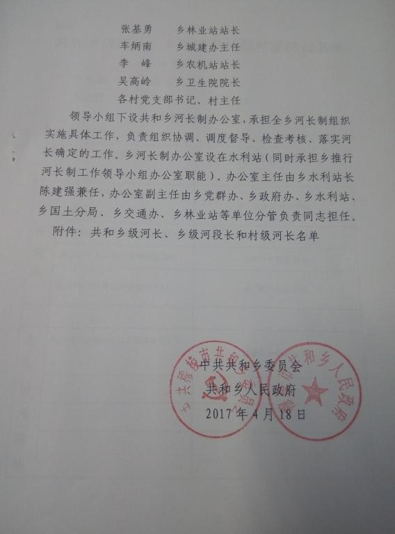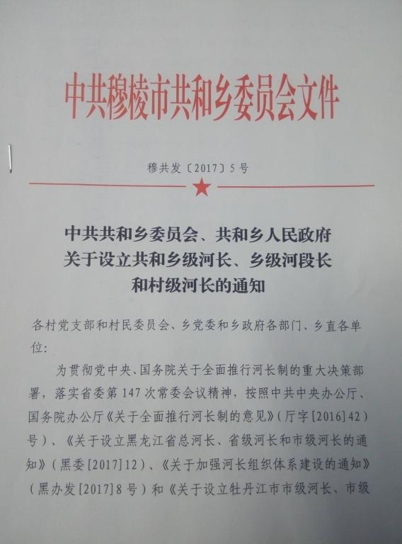 关于设立共和乡级河长、乡级河段长和村级河长的通知
