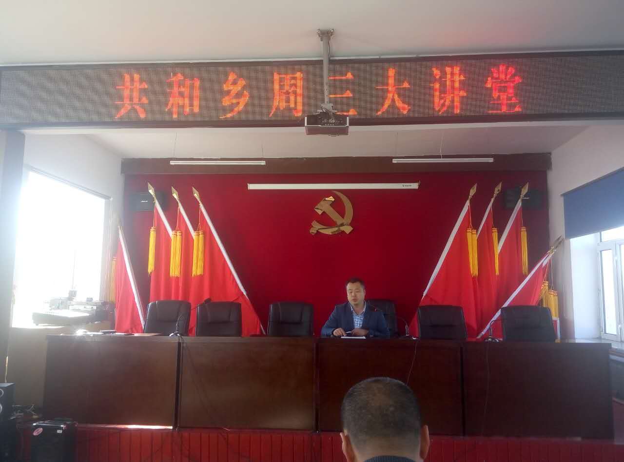 二、一堂党课。9月27日,共和乡利用周三大讲堂时间,召开全体机关干部大会,由共和乡党委书记于凤春同志讲党课,课上于书记传达了穆棱市委书记王铁《坚定理想信念 补足精神之钙》的报告,引经据典、旁征博引,给在坐的同志上了一堂非常精彩的廉政教育课。同时于凤春要求,共产党员要坚定理想信念,严守党的政治纪律和政治规矩。同时要求党员干部做人上要做一个真实坦诚的人、一个品行端正的人、一个宽厚善良的人、一个有责任感的人;做事上要高站位思考、高水平谋事、高效率办事、高风格处事;为官要做到公正、亲切、守纪、创新。